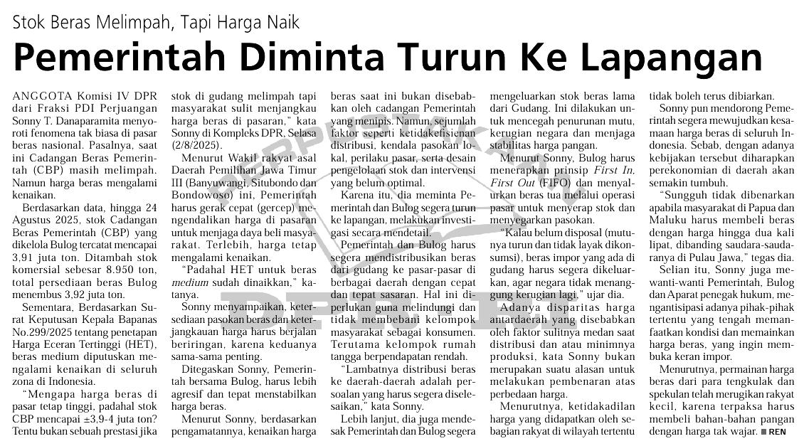 | Kata Kunci | Sonny T. Danaparamita,CBP,Cadangan Beras Pemerintah,HET,Harga Eceran Tertinggi,distribusi,Bulog |