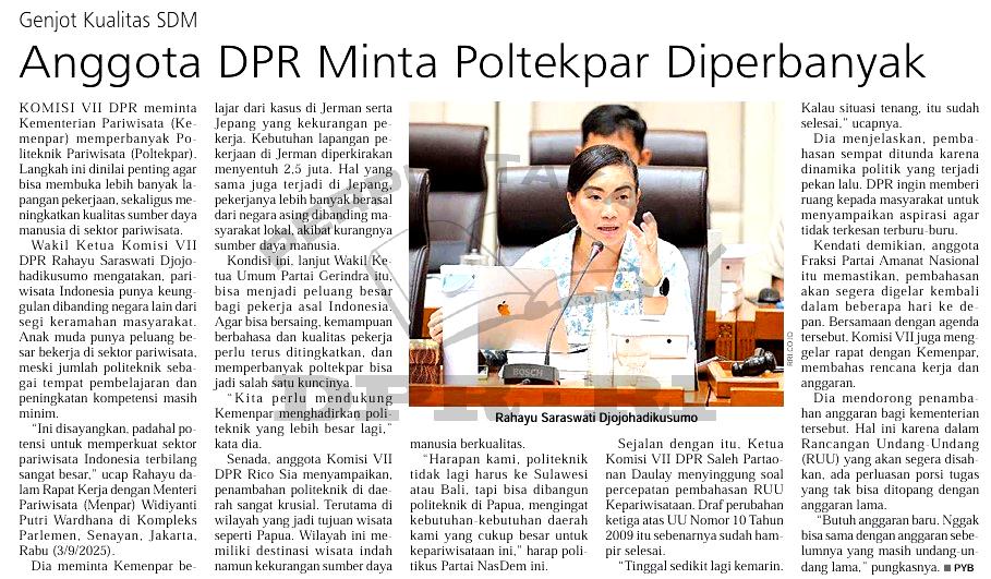 | Judul | Genjot kualitas SDm, Anggota DPR minta Polteker diperbanyak |