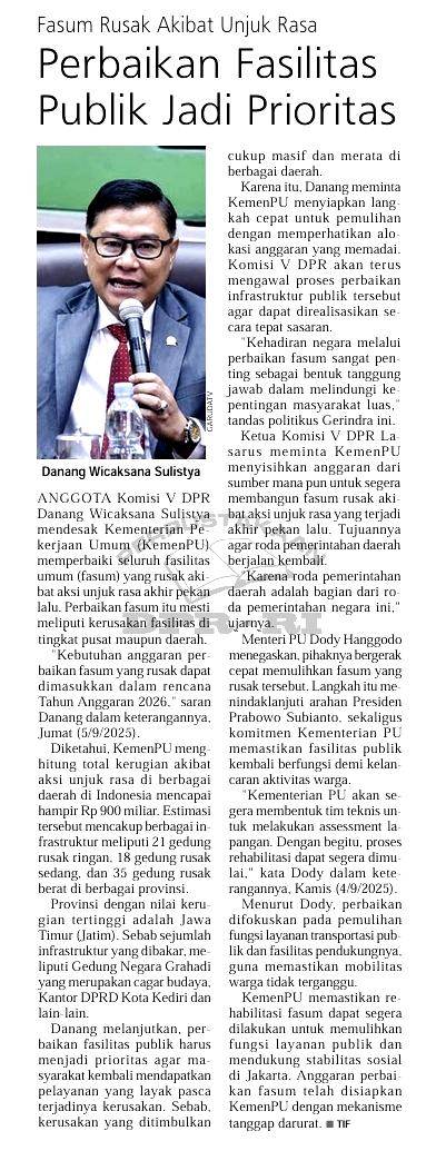| Judul | Fasum rusak akibat unjuk rasa, perbaikan fasilitas publik jadi prioritas |