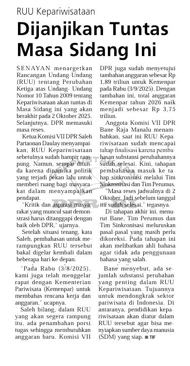 | Judul | RUU Kepariwisataan, dijanjikan tuntas masa sidang ini |