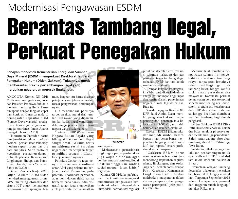| Judul | Modernisasi pengawasan ESDM, berantas tambang ilegal, perkuat penegakan hukum |