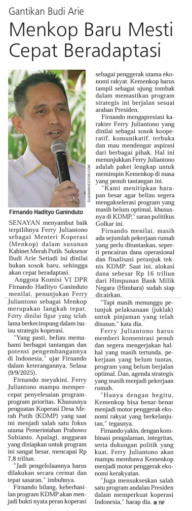 | Kata Kunci | Firnando Hadityo Ganinduto,Ferry Juliantono,Budi Arie Setiadi,KDMP,Koperasi Desa Merah Putih,Himbara,Himpunan Bank Milik Negara |
