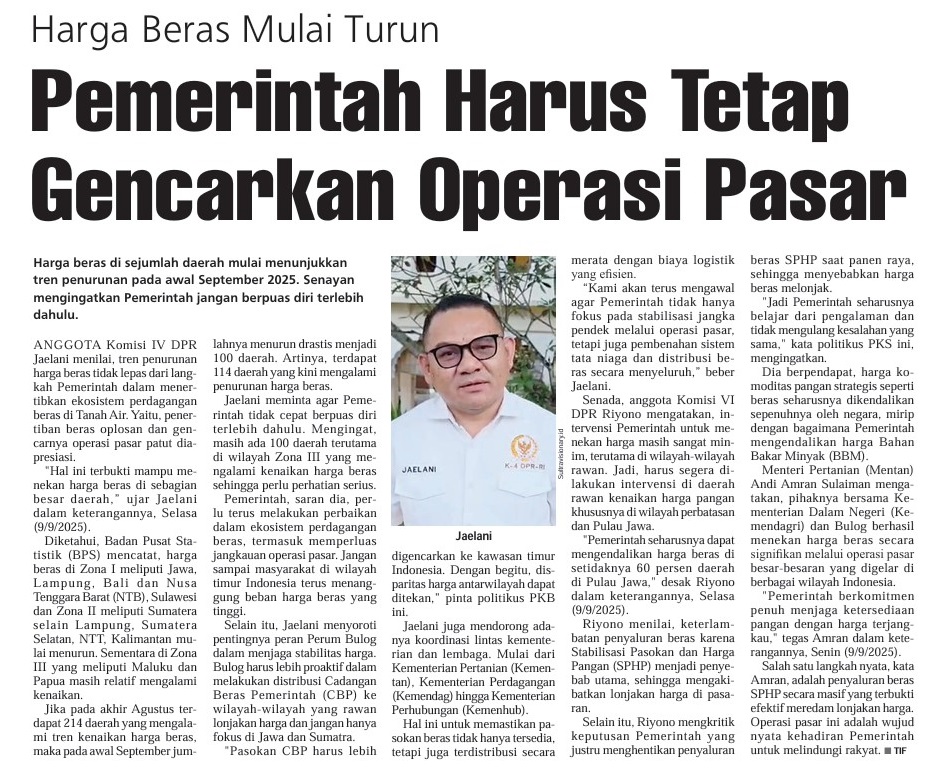 | Judul | Harga beras mulai turun, pemerintah harus tetap gencarkan operasi pasar |