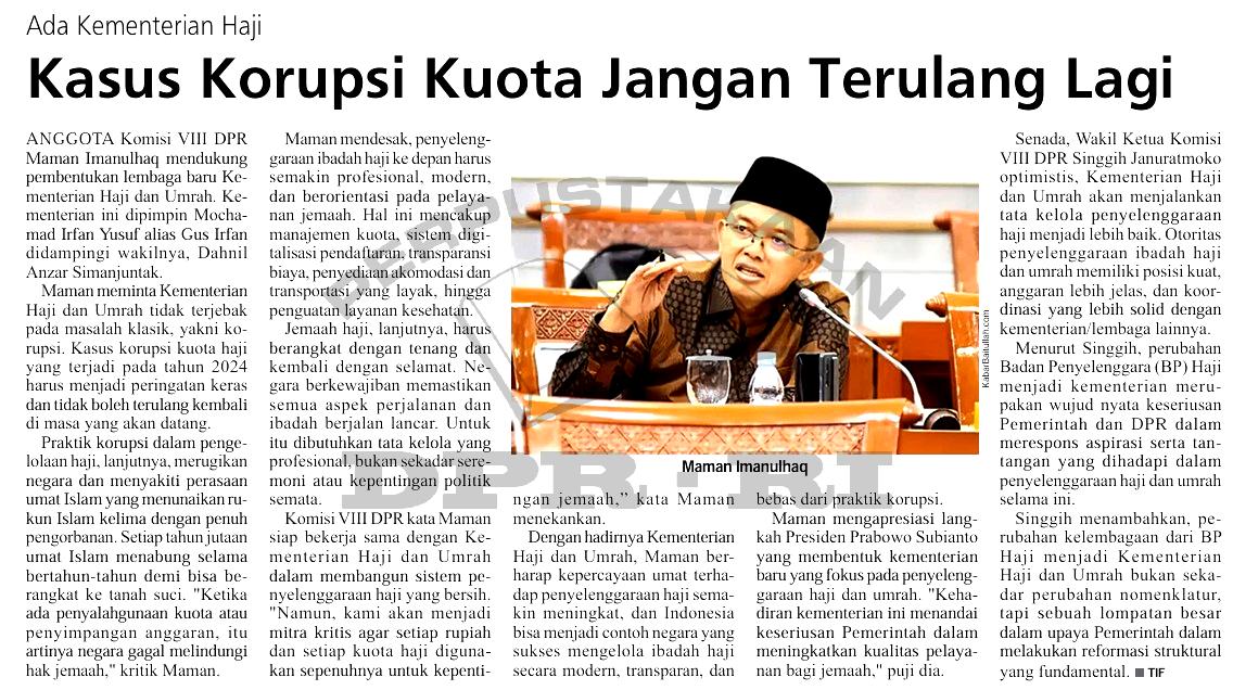 | Judul | Ada Kementerian Haji, kasus korupsi kuota jangan terulang lagi |