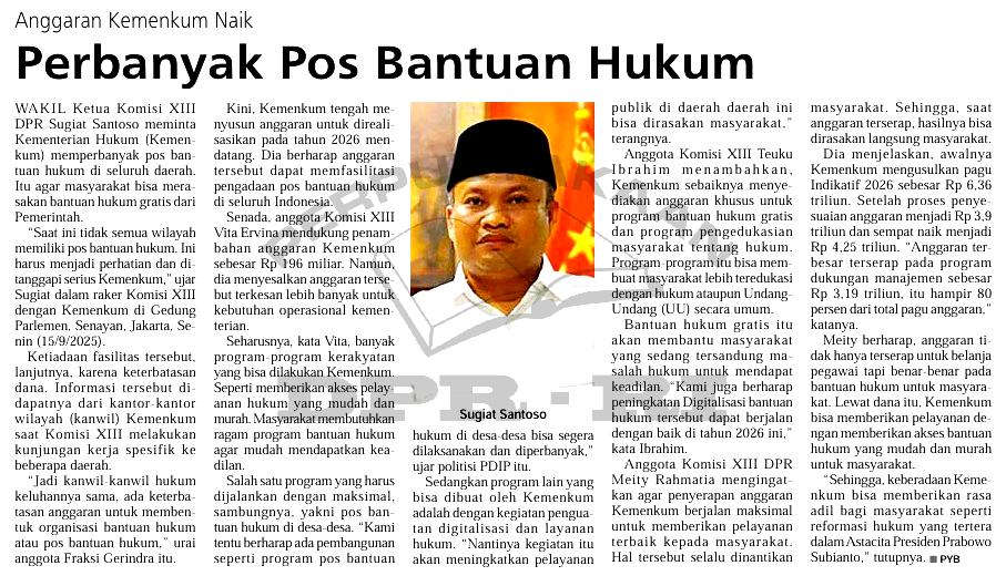 | Judul | Anggaran Kemenkum naik, perbanyak pos bantuan hukum |