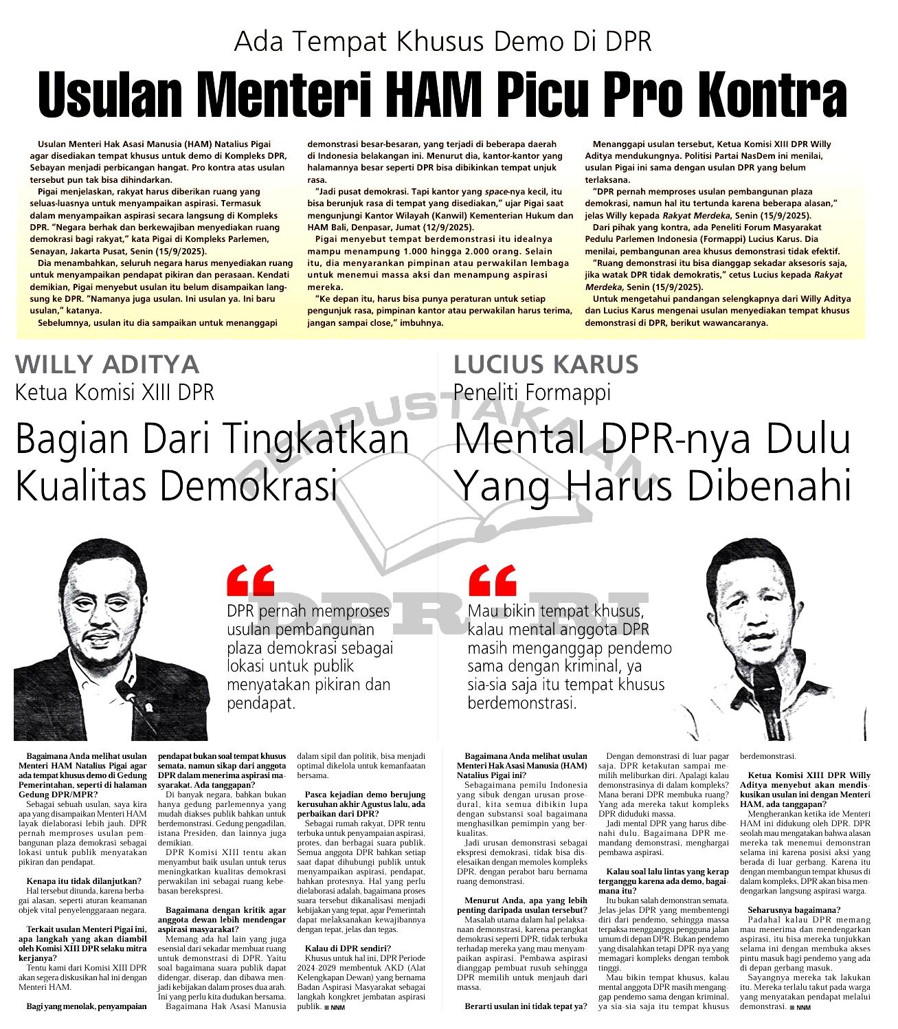 | Judul | Ada tempat khusus demo di DPR, usulan Menteri HAM picu pro kontra |