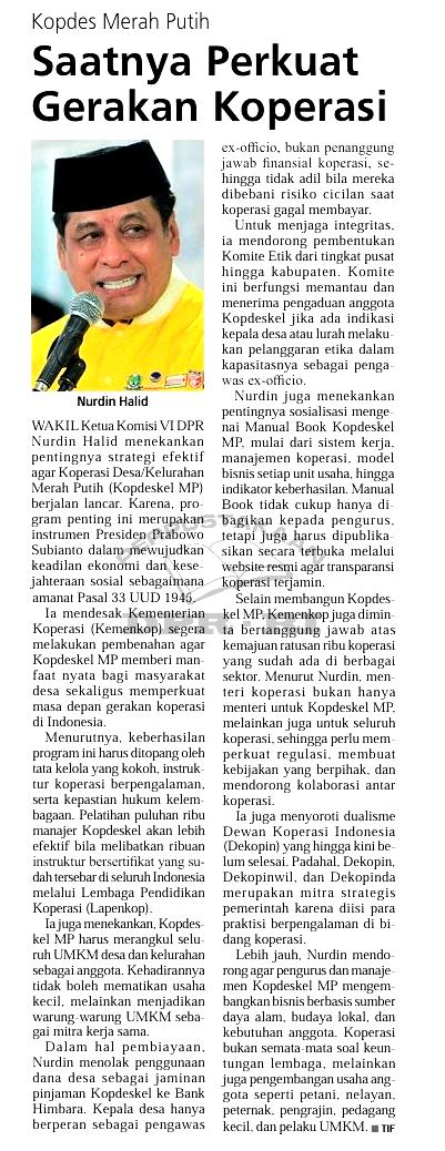 | Kata Kunci | Nurdin Halid,Kementerian Koperasi,dana desa,kepala desa,pengawas,komite etik,transparansi,sumber daya alam,budaya lokal,kebutuhan,anggota,petani,nelayan,peternak,pengrajin,pedagang |