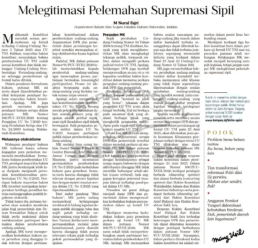 Melegitimasi Pelemahan Supremasi Sipil