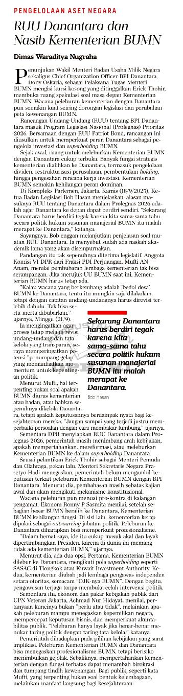 | Judul | RUU Danantara dan Nasib Kementerian BUMN |