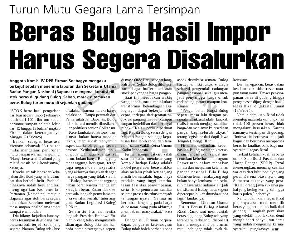 | Judul | Beras bulog hasil impor harus segera disalurkan |