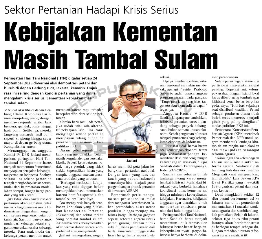| Judul | Sektor pertanian hadapi krisis serius, kebijakan Kementan masih tambal sulam |