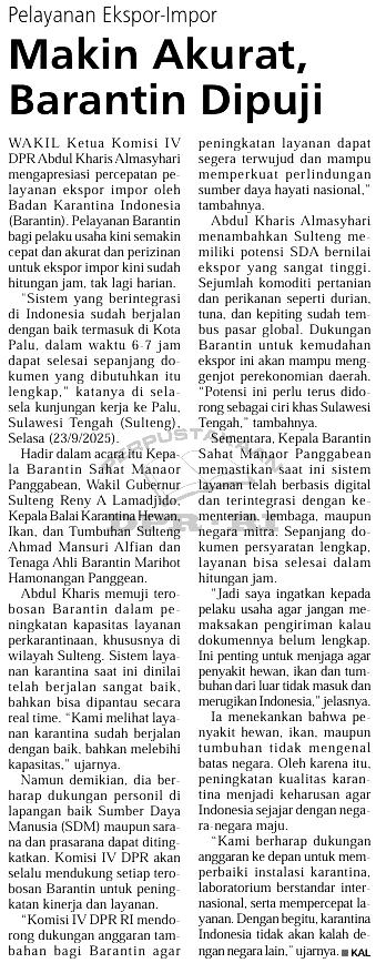| Judul | Pelayanan ekspor-impor, makin akurat, Barantin dipuji |