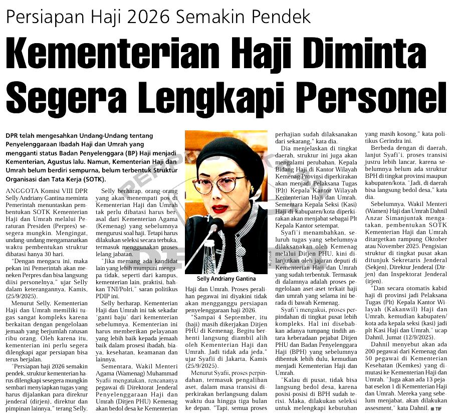 | Judul | Persiapan haji 2026 semakin pendek, Kementerian Haji diminta segera lengkapi personel |