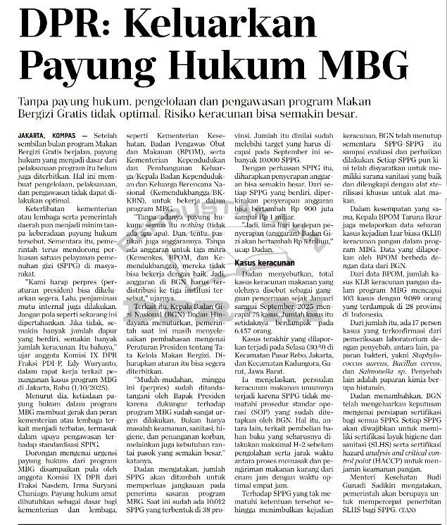 Makan Bergizi Gratis ; Edy Wuryanto ; Irma Suryani Chaniago