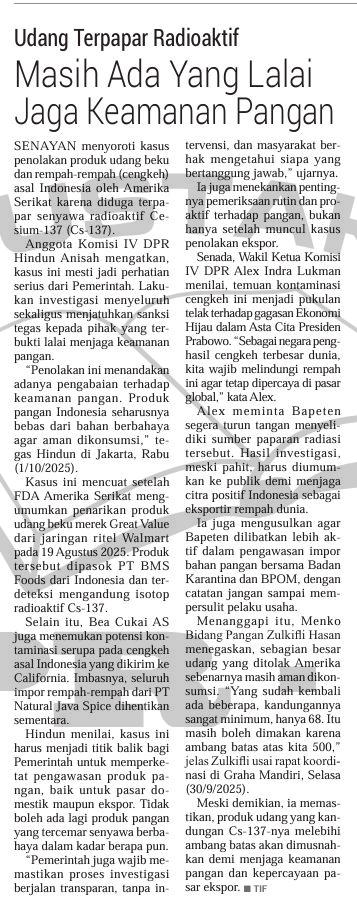 | Judul | Udang Terpapar Radioaktif Masih Ada Yang Lalai Jaga Keamanan Pangan |