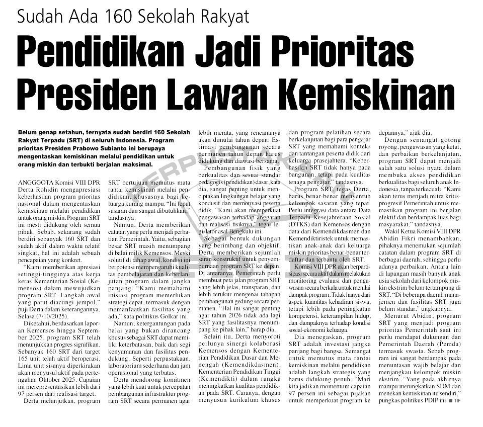| Kata Kunci | Derta Rohidin,SRT,Sekolah Rakyat Terpadu,Abidin Fikri.Pemerintah Daerah |