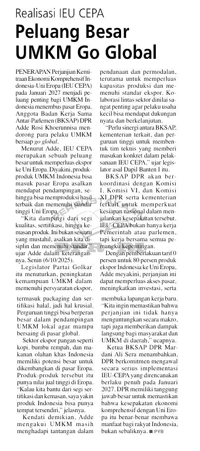 | Judul | Realisasi IEU CEPA, peluang besar UMKM go global |