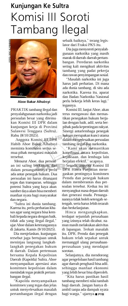 | Judul | Kunjungan ke Sultra: Komisi III soroti tambang ilegal |