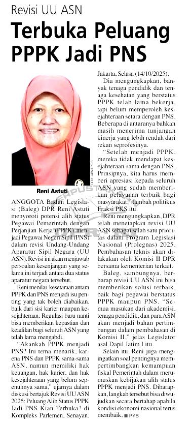 | Judul | Revisi UU ASN, terbuka peluang PPPK jadi PNS |