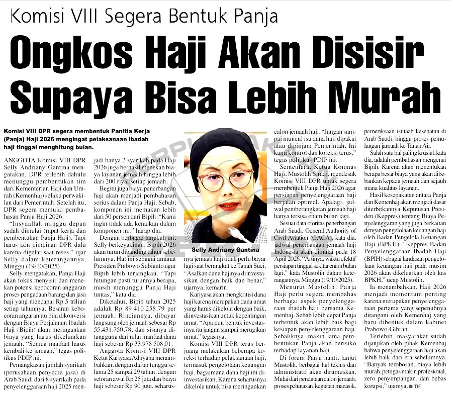 | Judul | Komisi VIII segera bentuk Panja,ongkos haji akan disisir supaya bisa lebih murah |