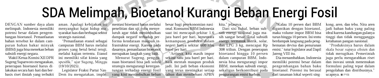 SDA Melimpah, bioetanol kurangi beban energi fosil