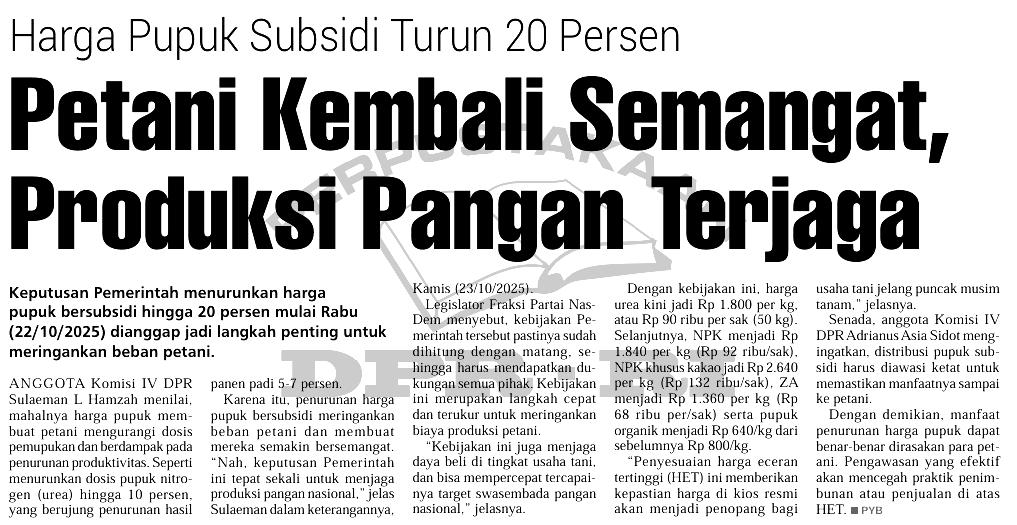 | Judul | Harga pupuk subsidi turun 20 persen, petani kembali semangat, produksi pangan terjaga |
