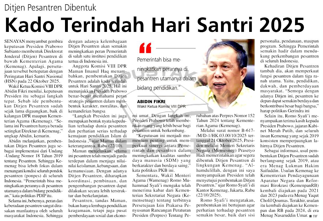 | Judul | Ditjen Pesantren dibentuk: kado terindah Hari Santri 2025 |