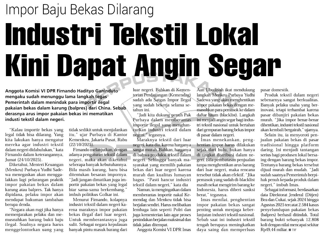 | Judul | Impor baju bekas dilarang: industri tekstil lokal kini dapat angin segar |