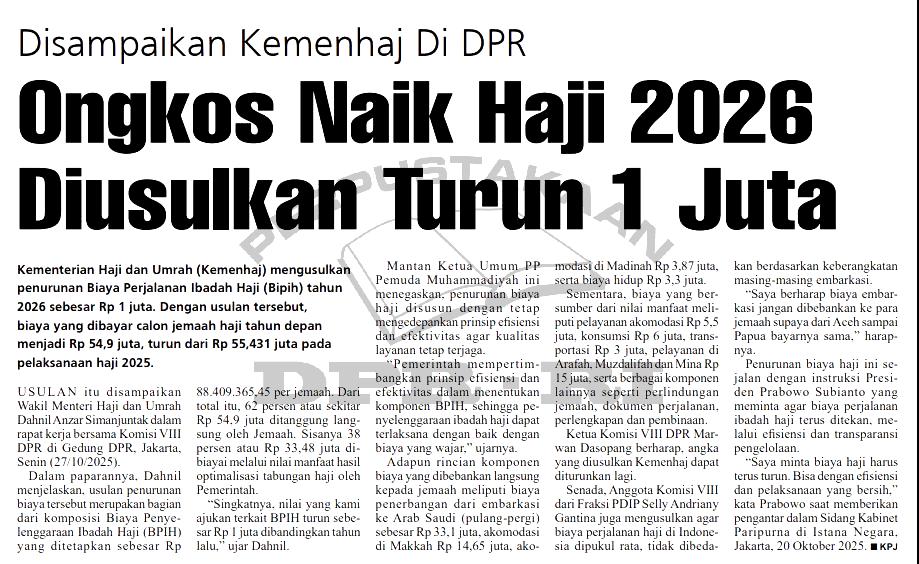 Ongkos Naik Haji 2026 Diusulkan Turun 1 Juta