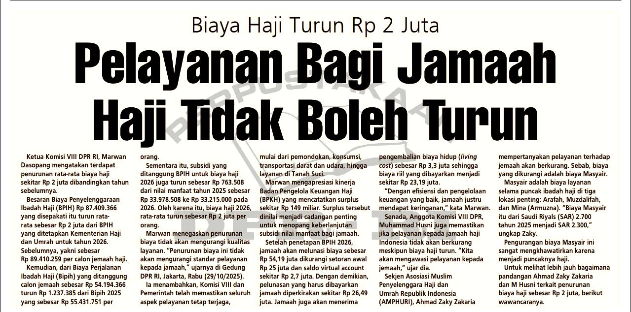 | Judul | Biaya Haji Turun Rp 2 Juta Pelayanan Bagi Jamaah Haji Tidak Boleh Turun |