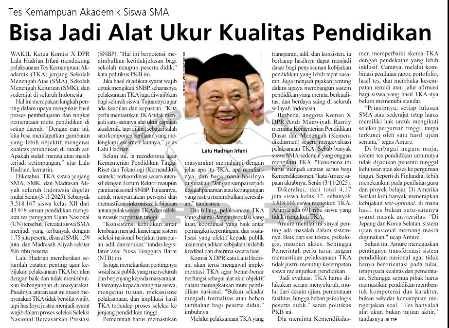 | Judul | Tes Kemampuan Akademik Siswa SMA Bisa Jadi Alat Ukur Kualitas Pendidikan |