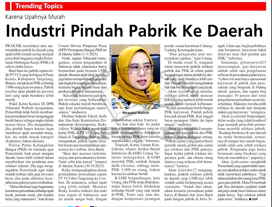 | Judul | Karena Upahnya Murah Industri Pindah Pabrik Ke Daerah |