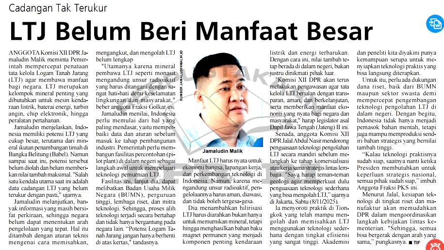 | Kata Kunci | Jamaludin Malik,Logam Tanah Jarang,kendaraan,listrik,chip elektronik,pertahanan,riset,BUMN,swasta |