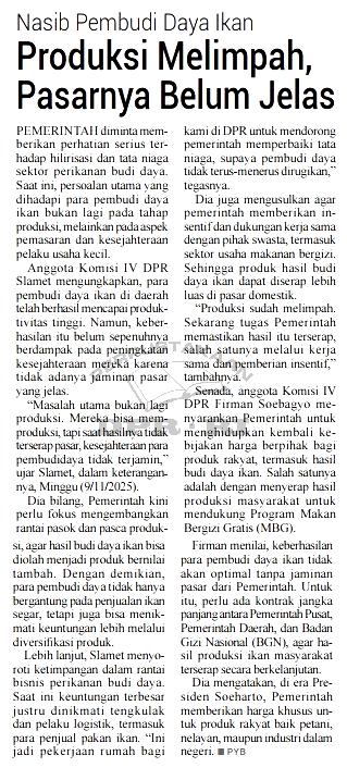 | Kata Kunci | Slamet,Firman Soebagyo,ikan segar,keuntungan,diversifikasi,produk,kebijakan,harga,MBG,pasar |