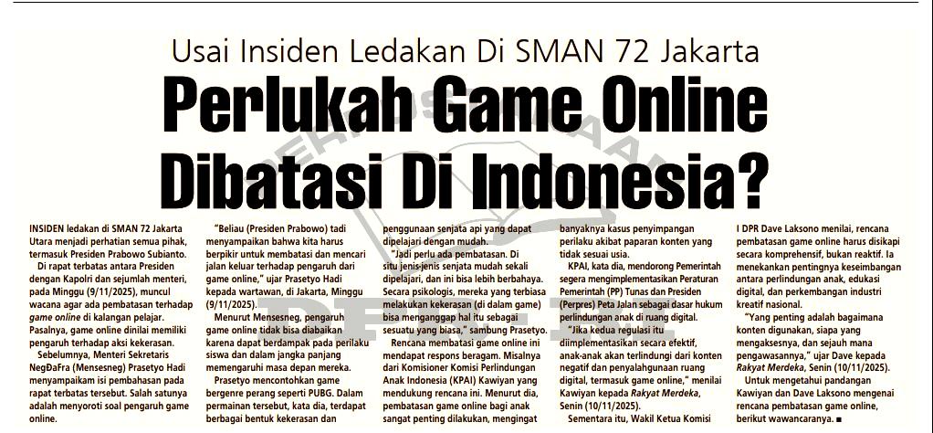 Game Online ; Dave Laksono ; Perlindungan Anak