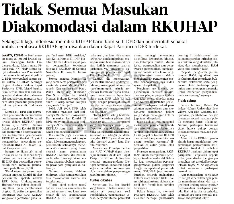 | Judul | Tidak Semua Masukan Diakomodasi dalam RKUHAP |