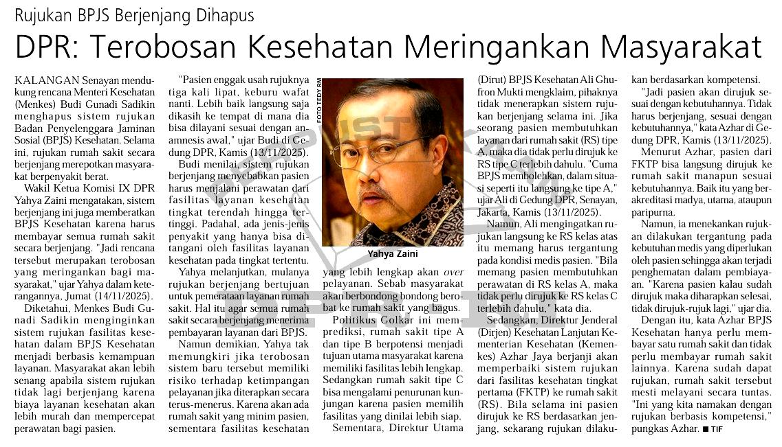 | Judul | Rujukan BPJS berjenjang dihapus,DPR: terobosan kesehatan meringankan rakyat |