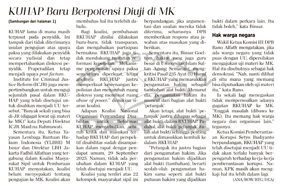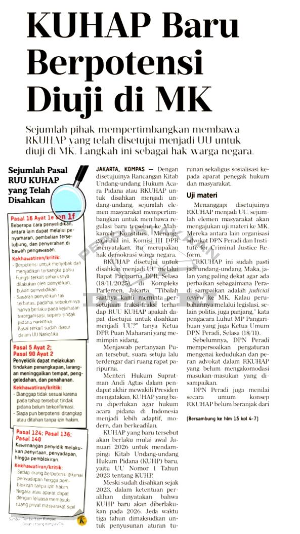 KUHAP Baru berpotensi diuji di MK