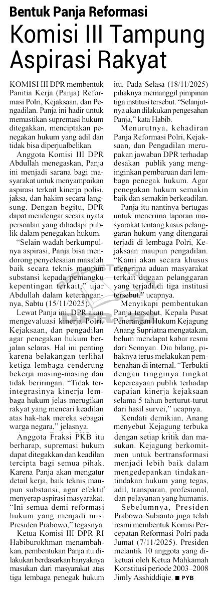 | Judul | Bentuk panja reformasi, Komisi III tampung aspirasi rakyat |