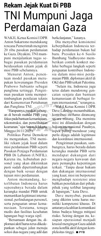 | Judul | Rekam jejak kuat di PBB, TNI mumpuni jaga perdamaian Gaza |