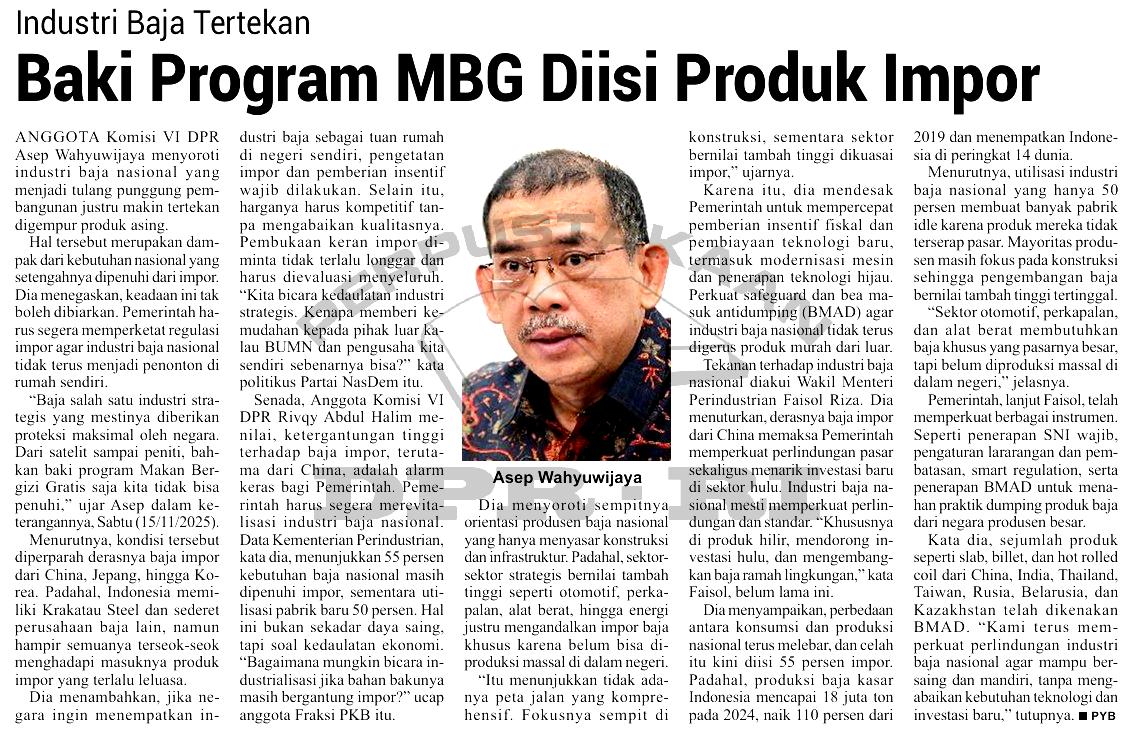 | Judul | Industri baja tertekan, baki program MBG diisi produk impor |
