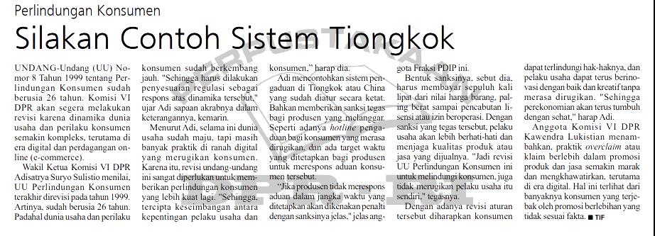 | Kata Kunci | Perlindungan Konsumen - Revis Undang-Undang ; Adisatrya Suryo Sulistio ; Kawendra Lukistian |