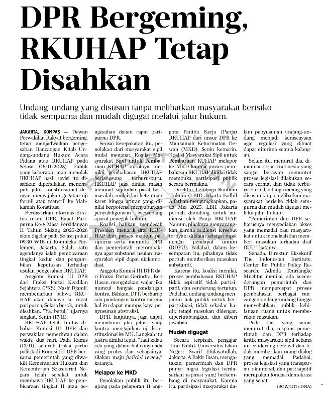 | Judul | DPR Bergeming, RKUHAP Tetap Disahkan |