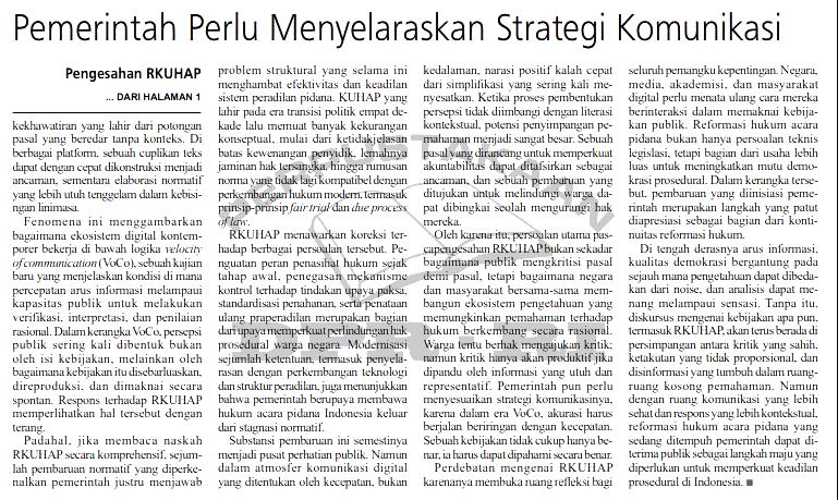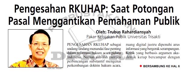 | Judul | Pengesahan RKUHAP: Saat Potongan Pasal Menggantikan Pemahaman Publik |