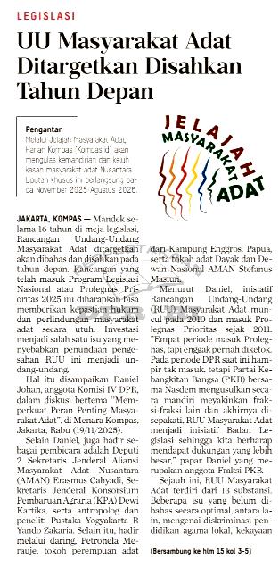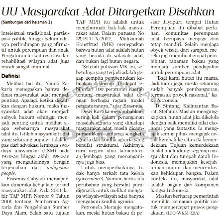 | Judul | UU Masyarakat adat ditargetkan disahkan tahun depan |