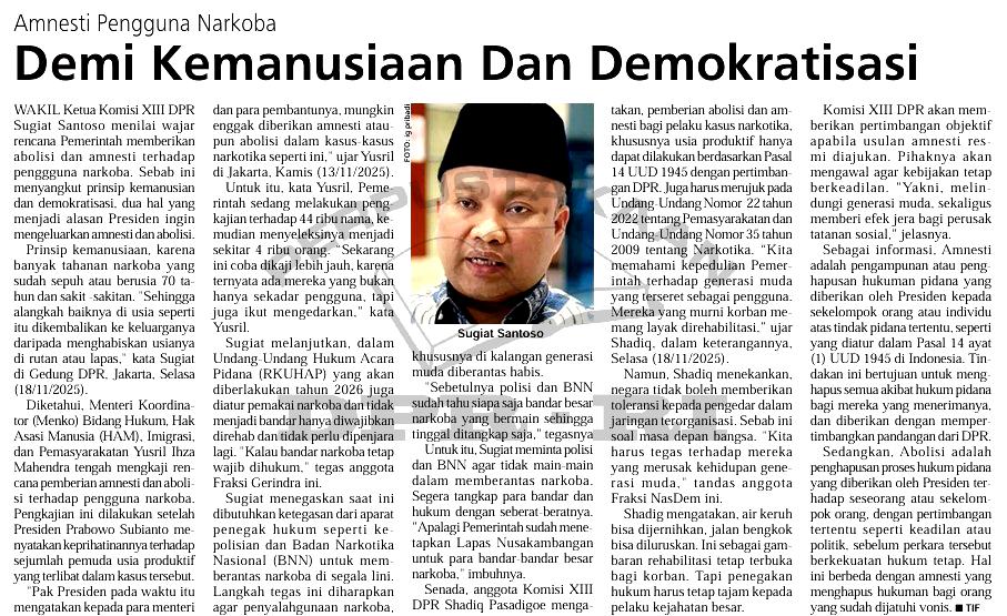 | Kata Kunci | Sugiat Santoso,Yusril Ihza Mahendra,RKUHAP,BNN,Badan Narkotika Nasional,Shadiq Pasadigoe,amnesti,abolisi |