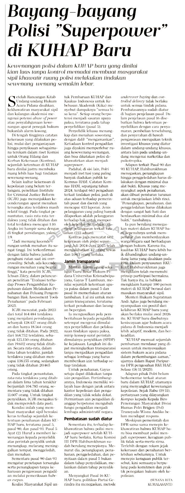 | Judul | Bayang-bayang polisi "Superpower" di KUHAP baru |