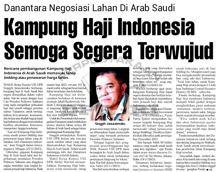 | Judul | Danantara negosiasi lahan di Arab Saudi: kampung haji Indonesia semoga segera terwujud |