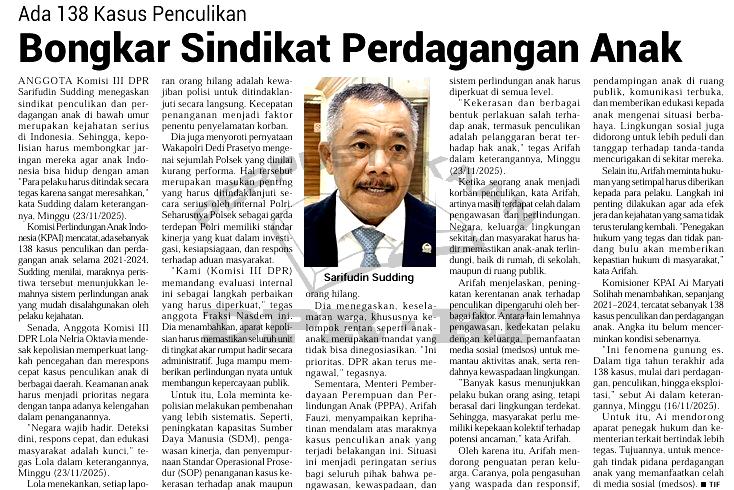 | Kata Kunci | Sarifudin Sudding,KPAI,Komisi Perlindungan Anak Indonesia,Lola Nelria Oktavia,Dedi Prasetyo,investigasi,SOP,Arifah Fauzi,Al Maryati Solihah |