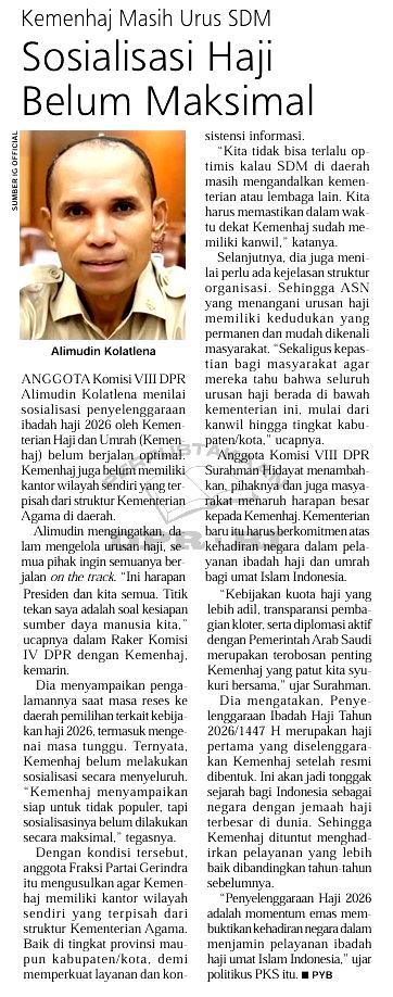 | Judul | Kemenhaj masih urus SDM: sosialisasi haji belum maksimal |